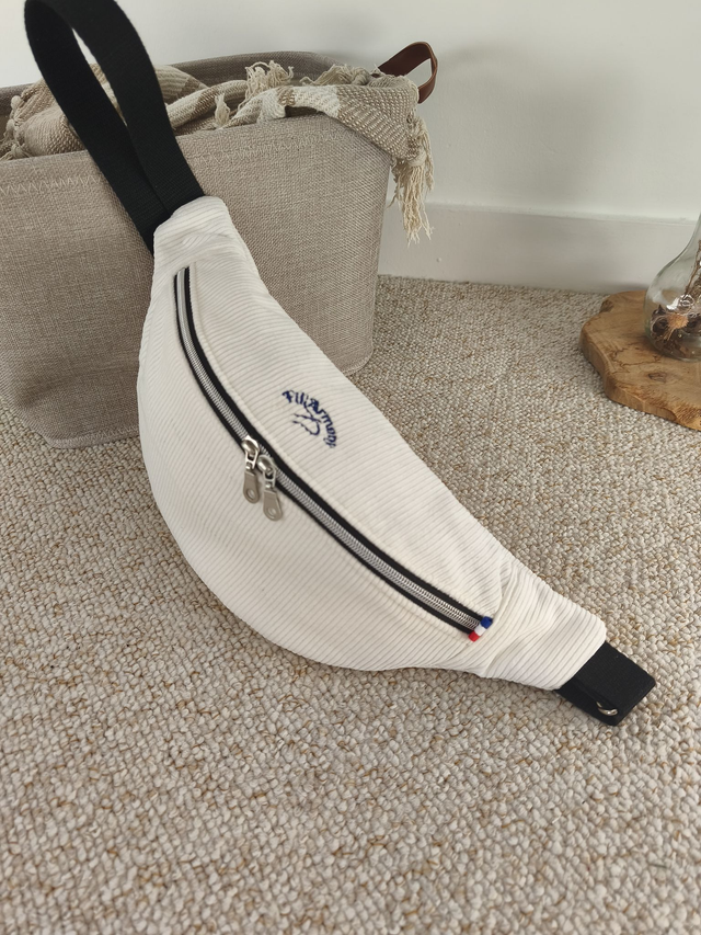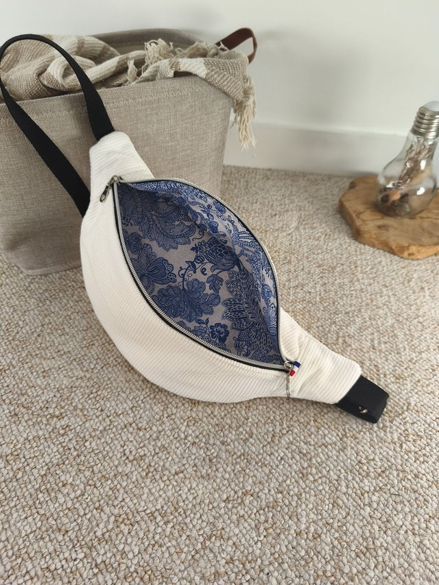 Tissu extérieur: velours côtelé blanc polaire, issu de stocks dormants, fabriqué en France