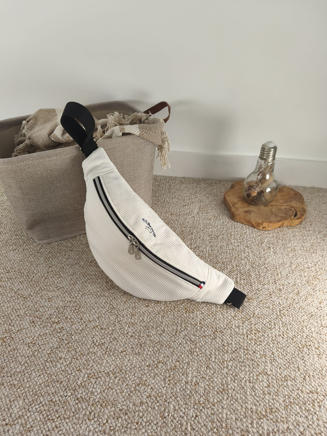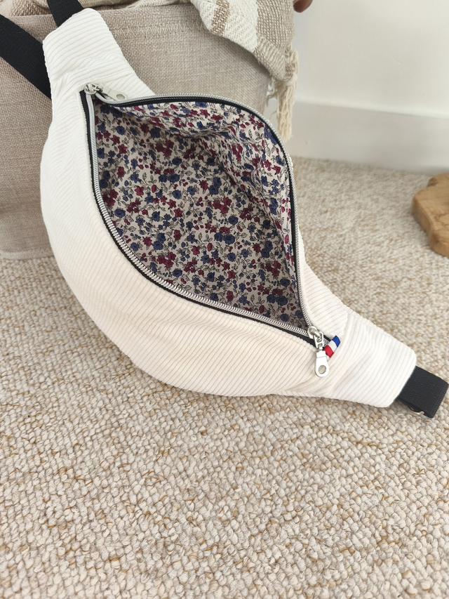 Banane Adulte velours côtelé blanc polaire et fleurs