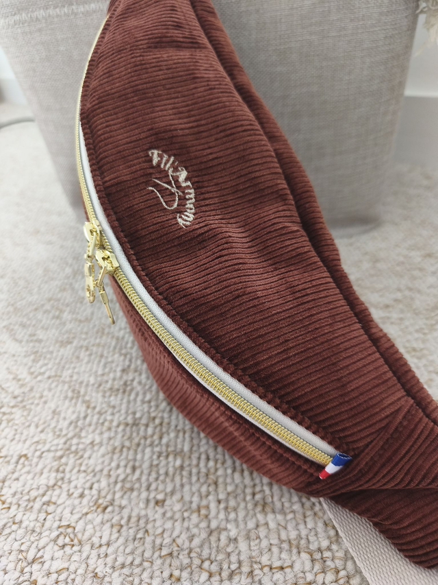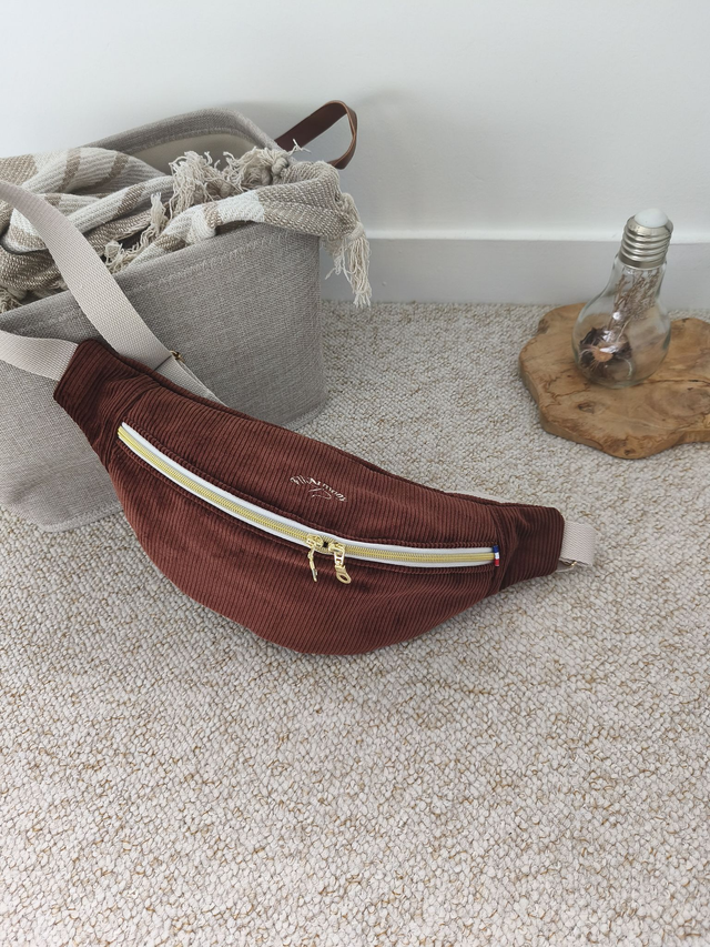 Tissu extérieur: velours côtelé marron cannelle, issu de stocks dormants, fabriqué en France
