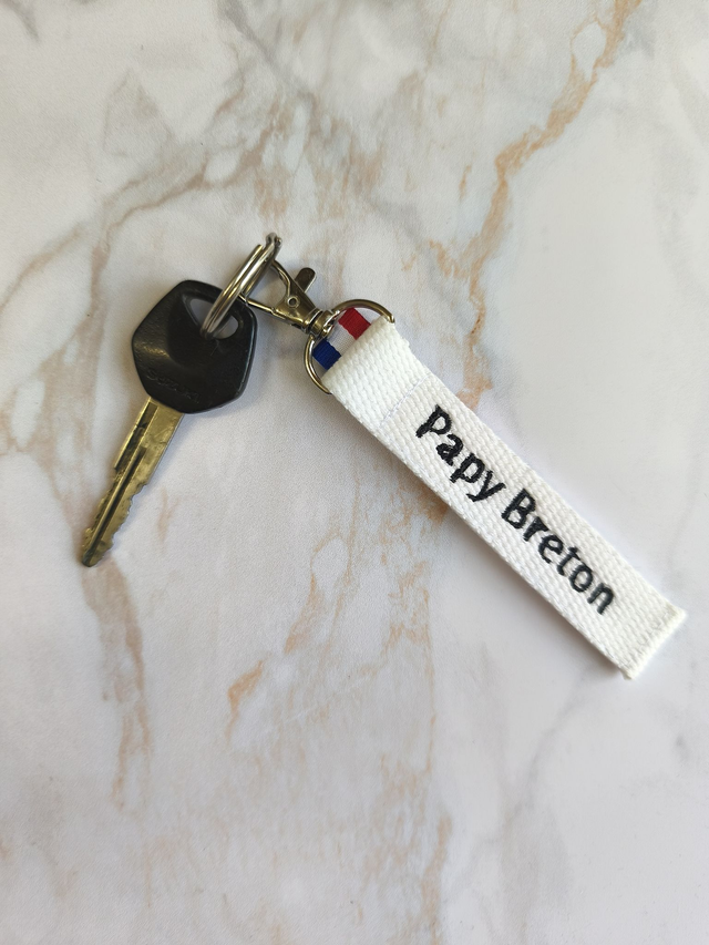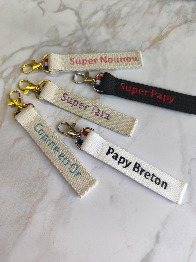 Vous pouvez personnaliser votre porte-clé, par la couleur de la sangle, le texte, et la couleur de celui-ci.